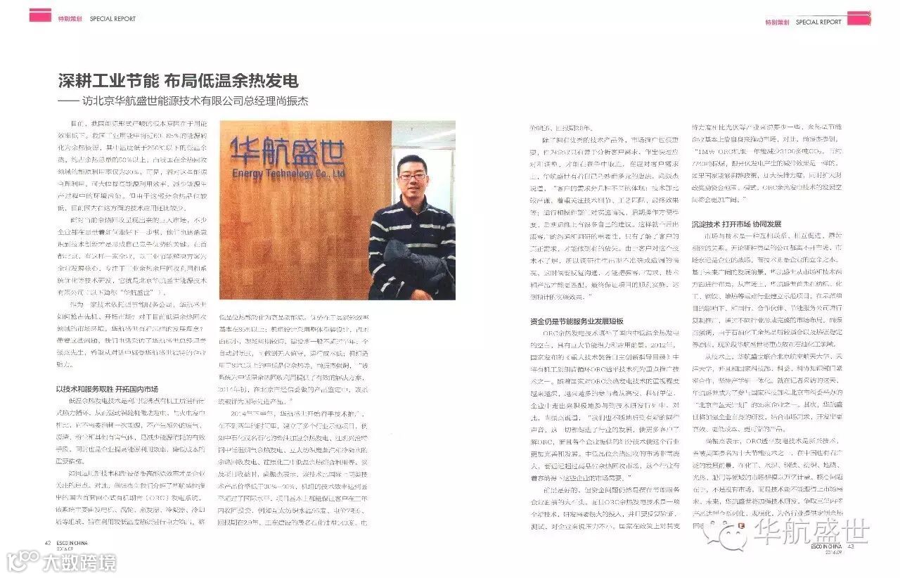 “热”在“十三五”,《中国节能服务》2016年第九期特别策划栏目瞄准余热回收和利用,采访了我公司总经理尚振杰。