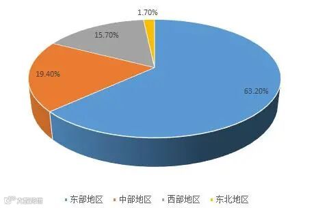 图表34 2018年列入统计的各区域环保企业营业收入占比