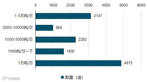 图表86 2019我国污水处理厂产能按规模分布情况(日产能)