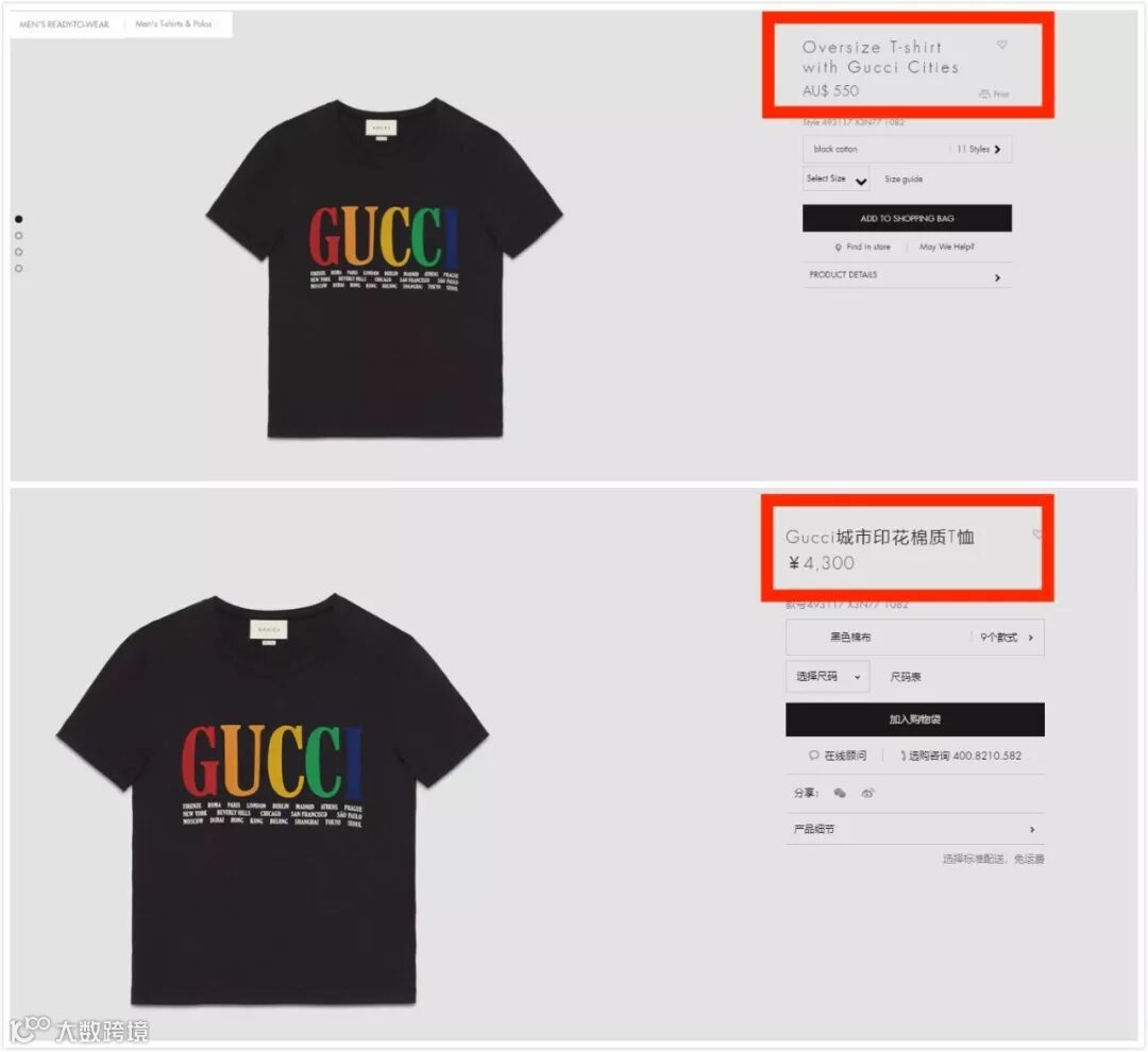 生活成本对比体现在各个方面,比如Gucci一件普通T恤,澳洲550刀,国内就要4300,就算乘上汇率4.8,澳洲的也才2640,贵了近两倍!