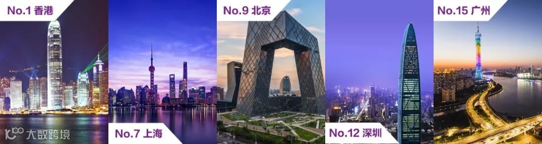 ▲2018全球城市生活成本排名中位列TOP20的中国城市。