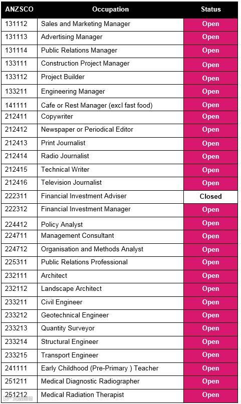 另外,西澳州政府也在最新公布的移民清单中关闭了一些职业的提名,其中包括生产经理、口译和翻译等职业,同时也限制了包括施工项目测量师、地质学家、牙医等提名职业的申请。