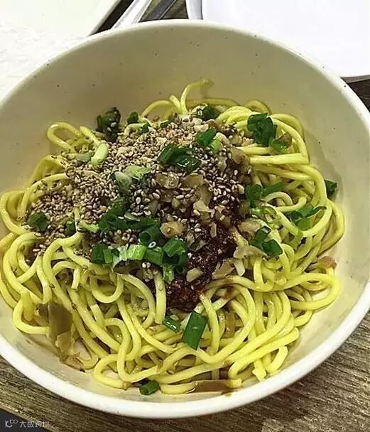 最棒的就是招牌的肉末担担面,热腾腾的面上放了肉末和油菜,料在面底下,一定要耐心拌匀,拌的时候麻香味会随着面的热气飘上来,底下的酱料是用芝麻酱调的,吃的时候面被酱包裹着~