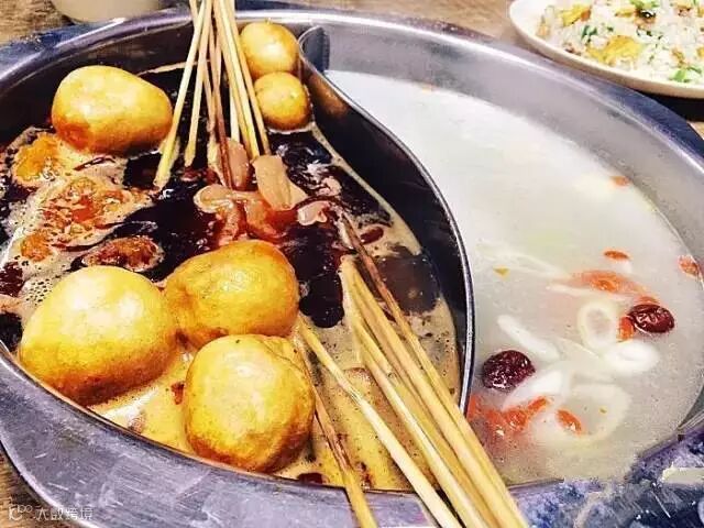 店虽小但是火爆到不行,七点半过去等了一个小时八点半吃上,九点多吃完出来竟然还有排队的!!一如既往的鸳鸯锅,锅底都是20,串串都是一块。自己去冰柜取,最后数串的数量。小料有干料和麻酱两种,都4元一份。