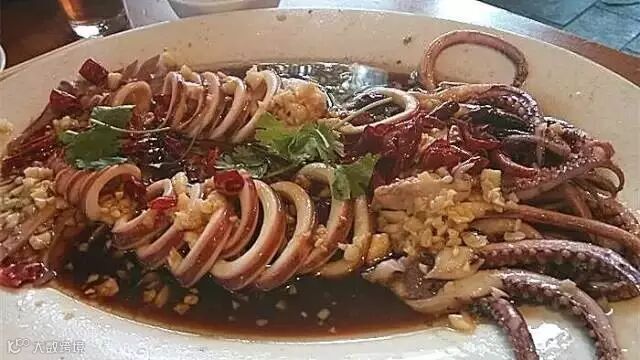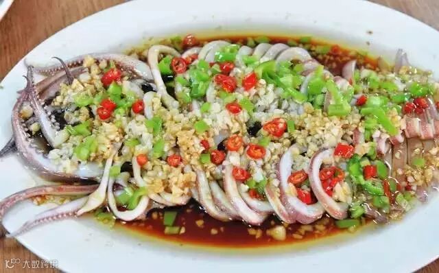 鱿鱼也是跨过山和大海从山东游来的,大大的一只。鱿鱼肉很有嚼劲,吃在嘴里也是越嚼越香。