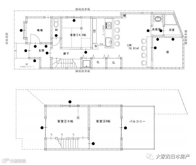 2.本物件为木造2层建筑,改装出自名家设计师之手,保留了古町屋的风格同时,卫浴等功能区做了现代化改装,适宜起居生活。一楼私家内庭配以落地窗,适合静坐冥思;三间客室分不同风格的洋室、和室房间,满足不同人群的需求。同时考虑到运营的便利,玄关处设置了(帳場),符合京都民宿法调整之后的改造要求,运营省心。