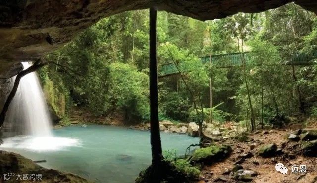 从上而下的,不止有雨水,还有瀑布。想象一下,在一个纯天然的水池里放松身心,抬头望去,只见瀑布从100米高的悬崖上倾泻而下,漫天的水光,却在快到底部时形成了弥漫开来的水雾,飘渺而悠远,仙气满满。