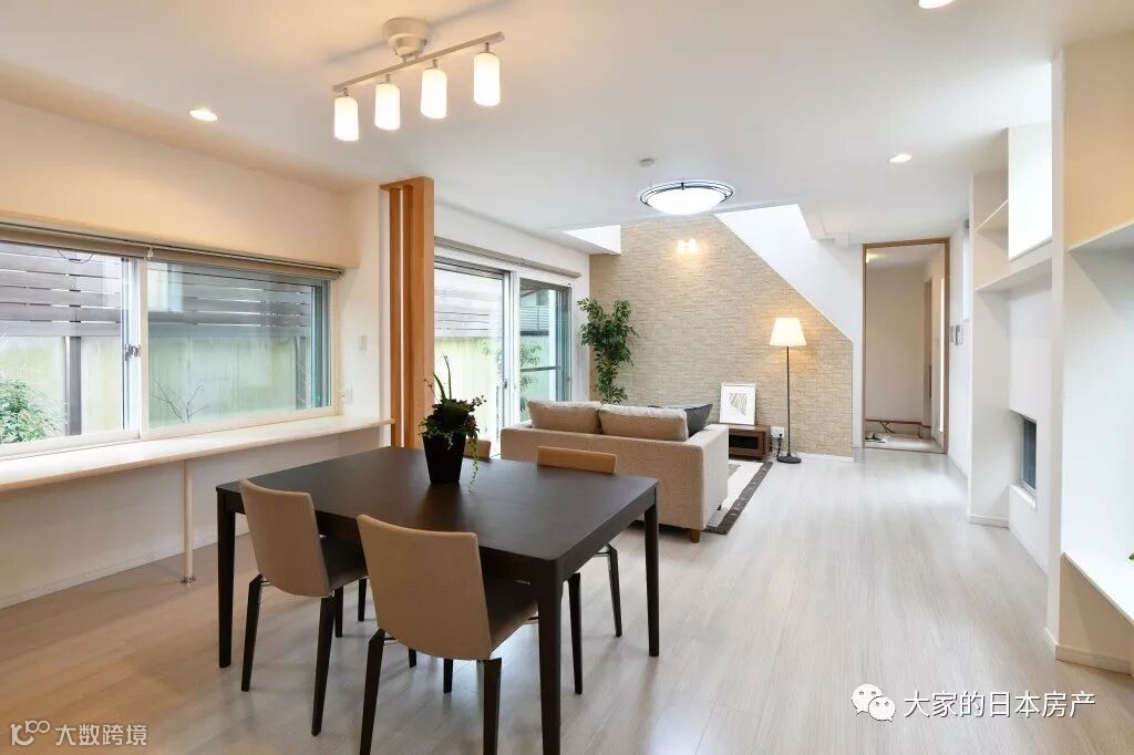 2.本物件分为木造2层建筑,建于2010年,非常新,外观造型大气,线条舒畅;内部简约设计、入口挑高、天顶侧墙多开窗设计让室内光线非常充足,同时近40平米的大客厅让娱乐、朋友小聚都十分轻松,有别于普通日式一户建的局促感。同时双卫生间、双停车场的布局,两代家庭或者朋友拜访同时入住,也十分轻松。