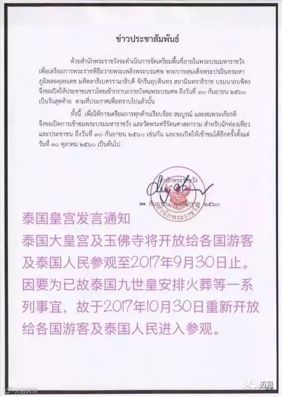随着泰国先王拉玛九世逝世将满一周年,泰国政府亦加紧赶工准备,根据泰国官方公告,火葬仪式将于10个月25日开始,举办为期5天的隆重火葬和纪念仪式。