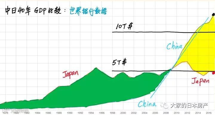 有了改革开放20年的底子,中国经济持续增长,截止到2017年,中国GDP已经是日本的2.5倍。以前中国的制造业是“世界工厂”,现在中国的人工成本已经超过日本,日本工厂的“价美”产品开始输入中国。