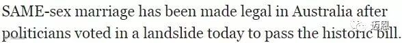 此前,澳洲总理谭宝公开表示,是否支持同性婚姻合法化,其实就是是否支持澳洲人人平等~