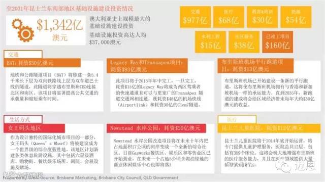 布里斯班之所以吸引大量投资者的眼球,与政府的积极作为有着很大关系,其快速发展得益于澳洲历史上最大规模的公共基础基建投资。除了昆州政府斥资$300亿澳元,联邦政府更是狂砸$1,342亿澳元强势力挺!总计$1,642亿澳元!大大超过了悉尼和墨尔本的基建投入。