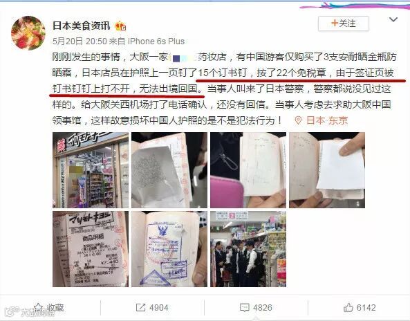 当事人说由于签证页被15个钉书钉得都打不开,担心可能因此无法出境回国,所以后来还叫来了日本警察。