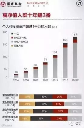 报告显示,2016年,中国的高净值人群数量达到158万人;与2014年相比,增加了约50万人,年均复合增长率达到23%,相比2012年人群数量实现翻倍。