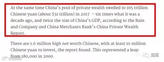 日前,据中国银行和招商银行的统计,中国富豪的的私人财富水平在2017年猛增至165万亿元人民币(约合31万亿澳元),这个数字达到了10年前的6倍!是中国GDP的两倍!