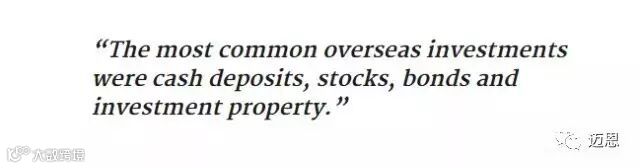 同时,中国投资者最常见的海外投资方式是现金存款,股票,债券和房地产。