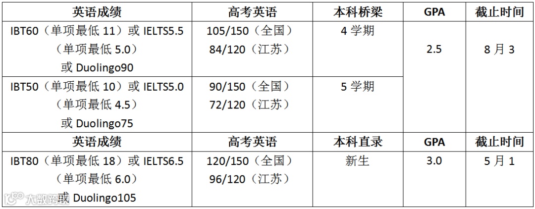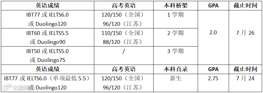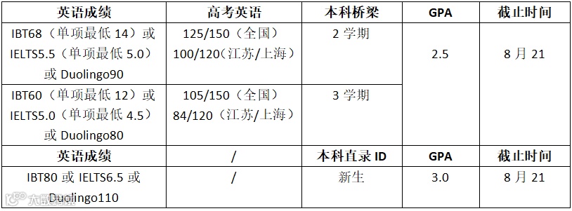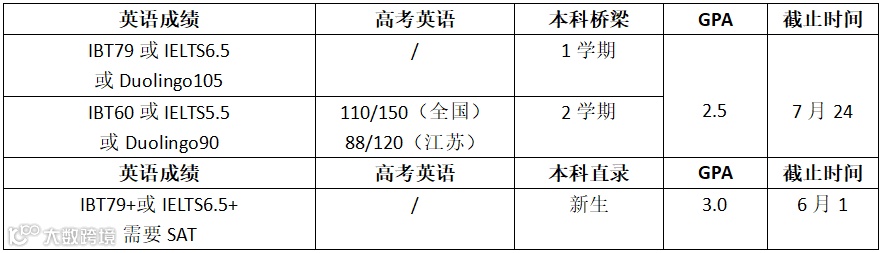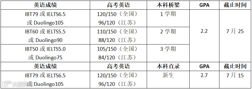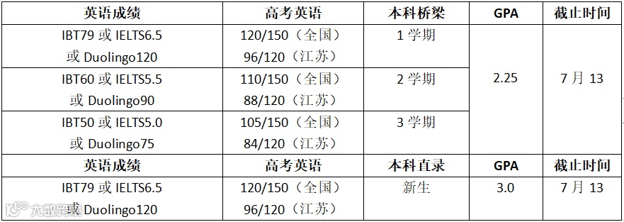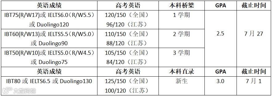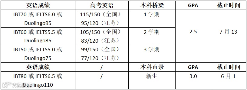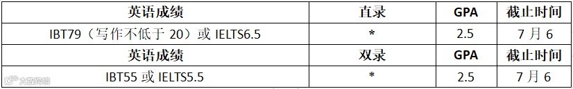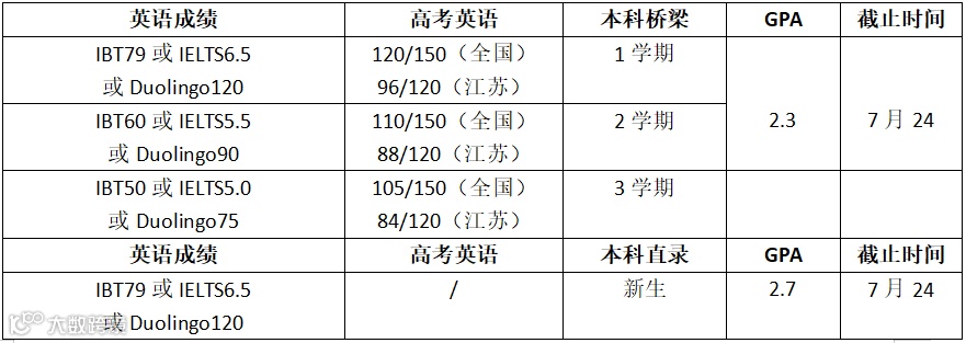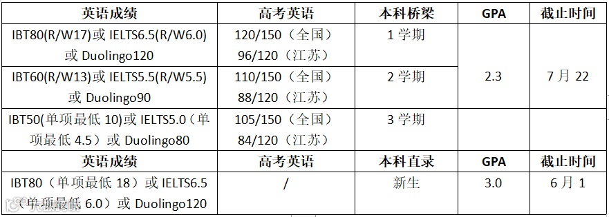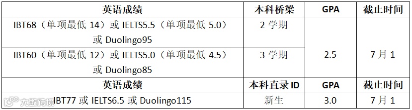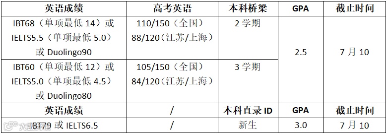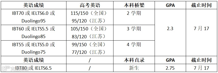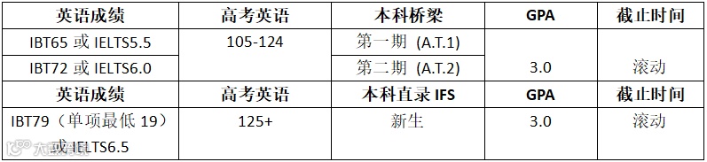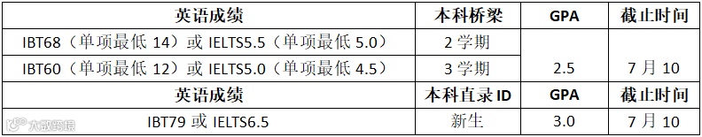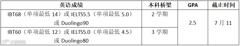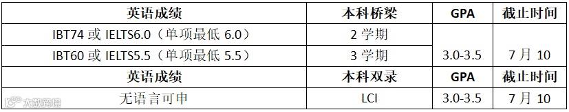 ♥ 无语言可以内测或者桥梁前面加语言课程,最低托福40或雅思4.0