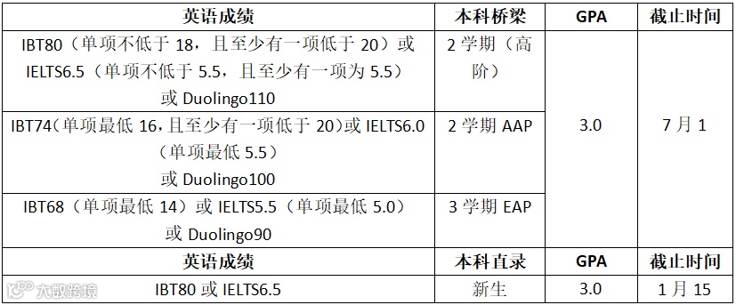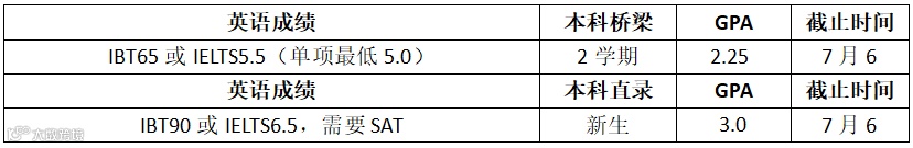 美国社区大学毕业/国内三年大专毕业/国内本科大三;申请人需有相关的专业背景,经大学评估,至少12个可转学分;申请时可配CPS硕士有条件录取