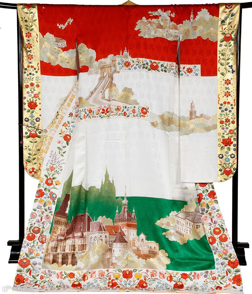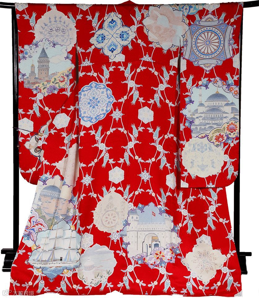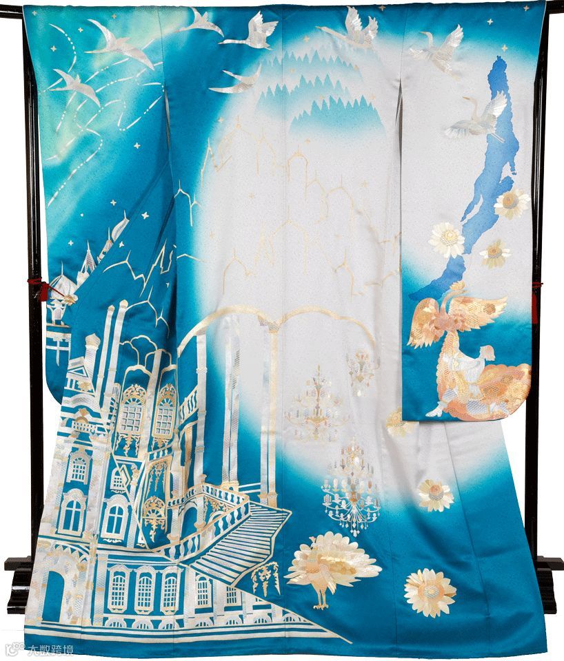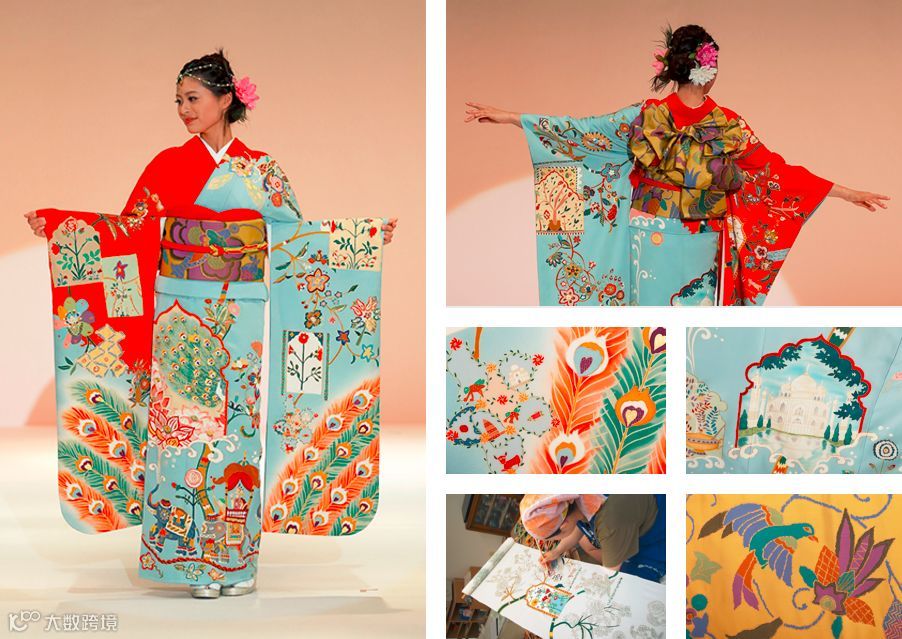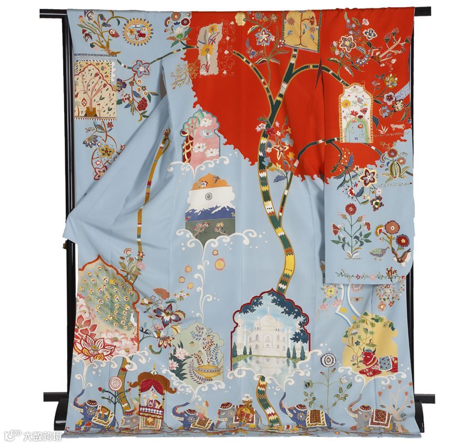 在象征印度的和服上,你能看到印度象、莲花、孔雀、泰姬陵等意象。