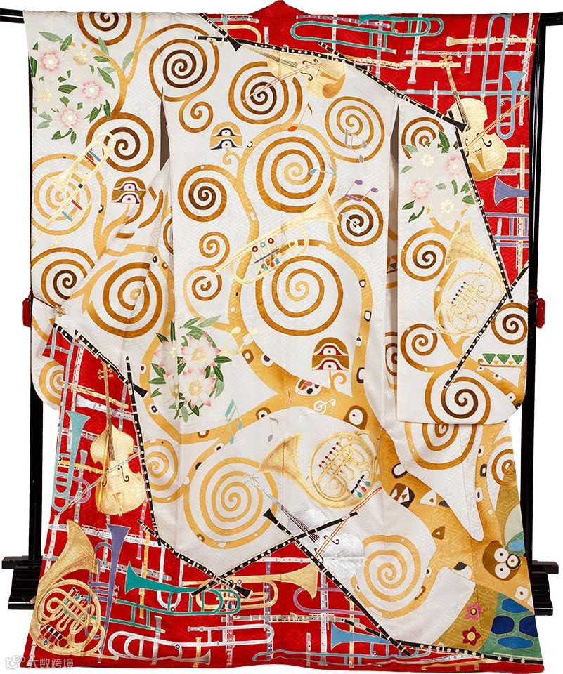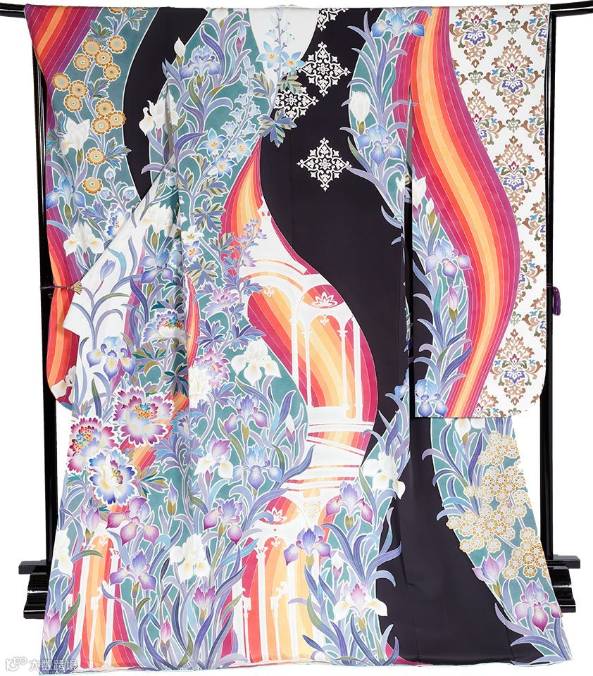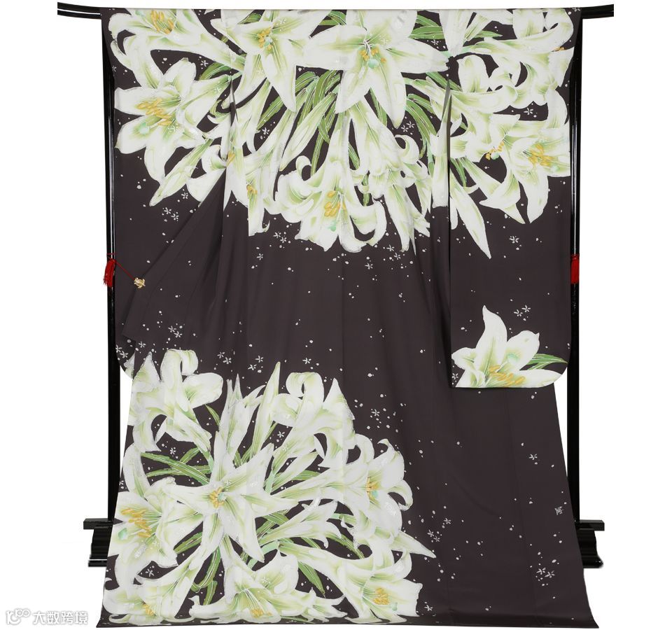 设计者将与法国波旁王朝颇有渊源的百合花,大胆地运用到整件和服上,展现法国的简约美。