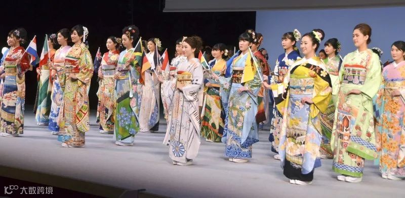 由选拔而出的100位模特身穿各国特色的和服,