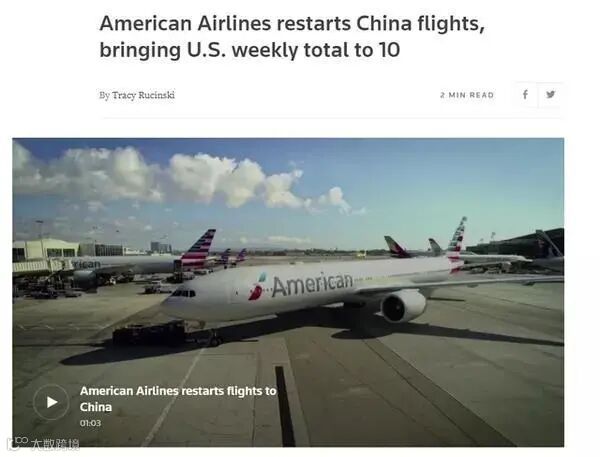美国时间11月12日,美国航空已重新开通飞往中国的客运航班。这也将目前美国的航空公司往来中国的航班总数增至每周10班。