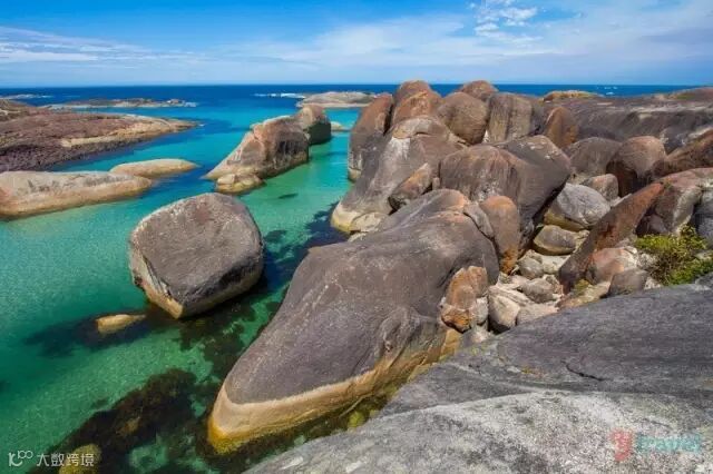 而体验这一切的最佳地点是从青色池(Greens Pool)停车场处,顺着步径向东前行至大象岩。大象岩由两个象型岩石组成,占据着60米长海滩的中心。这两块巨岩坐落在狭长的桑迪湾底部,周围环绕着花岗岩,其中还包括沉浸在海湾水域内的一些象型尺寸的巨岩。