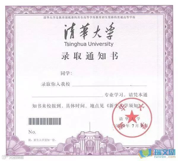被清华大学录取。