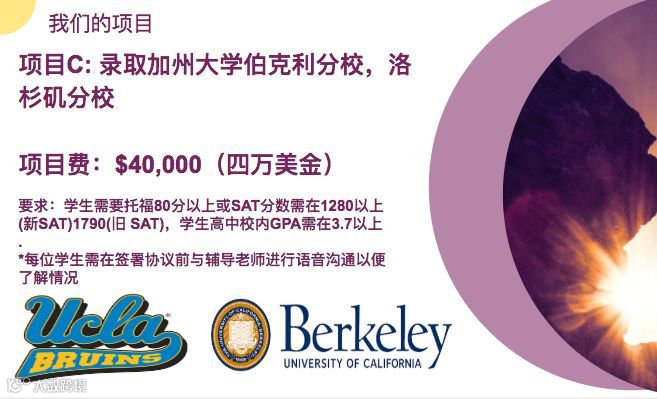 保障学生做好足够的背景提升,课外活动,满足顶尖UC的申请要求,使得学生脱颖而出。