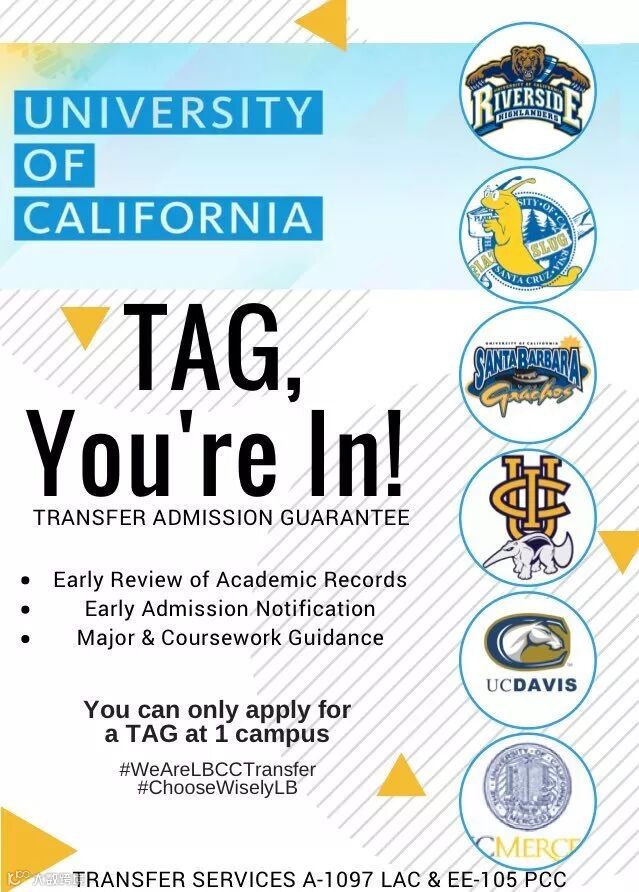 对于有TAG的学校,满足TAG中课程要求极其重要。完成GE课程以及转学基本课程要求是成功转学必不可少的条件。