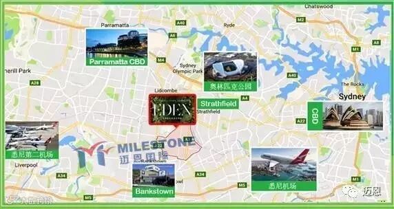 Eden位于距离悉尼市中心17km处,距离奥林匹克公5km,SydneyAirport13km,紧邻Strathfield和Bankstown,地理位置四通八达且便于到达悉尼东西南北各处。