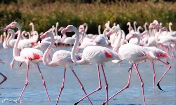 每年的2月~3月之间,会有2万只粉红色的火烈鸟会飞到拉纳卡盐湖享受温暖的冬日阳光;粉色的火烈鸟也给拉纳卡盐湖带来了不一样的生机。