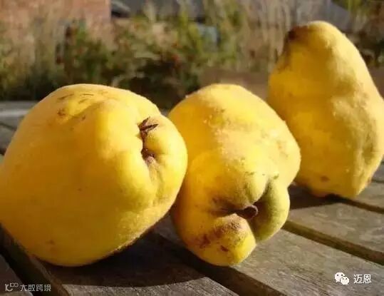 超市里卖的榅柏就像大一号的柠檬。造型还有点像梨。