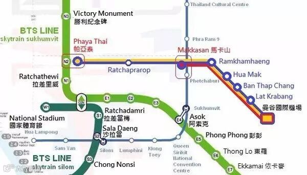 帕卡侬站PhraKhanong附近有各种知名连锁五星酒店,例如索菲特、希尔顿、万豪等。从这里坐轻轨15分钟就能抵达国际一线奢侈商场Emporium及Emquartier,42Tee-Off Driving Range高尔夫球场,以及闻名遐迩的班哲希利BenjasiriPark,在这就可体验贵族名流的生活。在这还可以经常见到各种泰国明星来这拍戏取景。