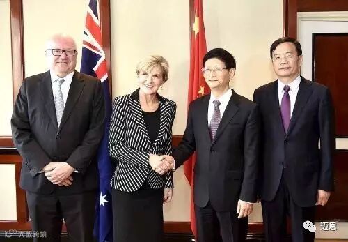 4月21日,中共中央政治局委员、中央政法委书记孟建柱在悉尼会见澳洲总理谭保、外长毕晓(Julie Bishop)和律政部长伯兰迪(George Brandis),此次会面是两国之间“高级别安全对话”的活动之一。美国副总统彭斯(Mike Pence)也在当天抵达澳洲,展开对澳的访问。