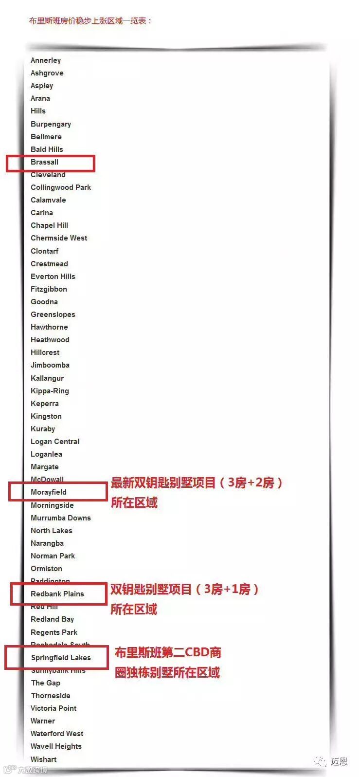 我们布里斯班项目所在区域均上榜!名副其实为我们推荐给客户投资发展的好区域!