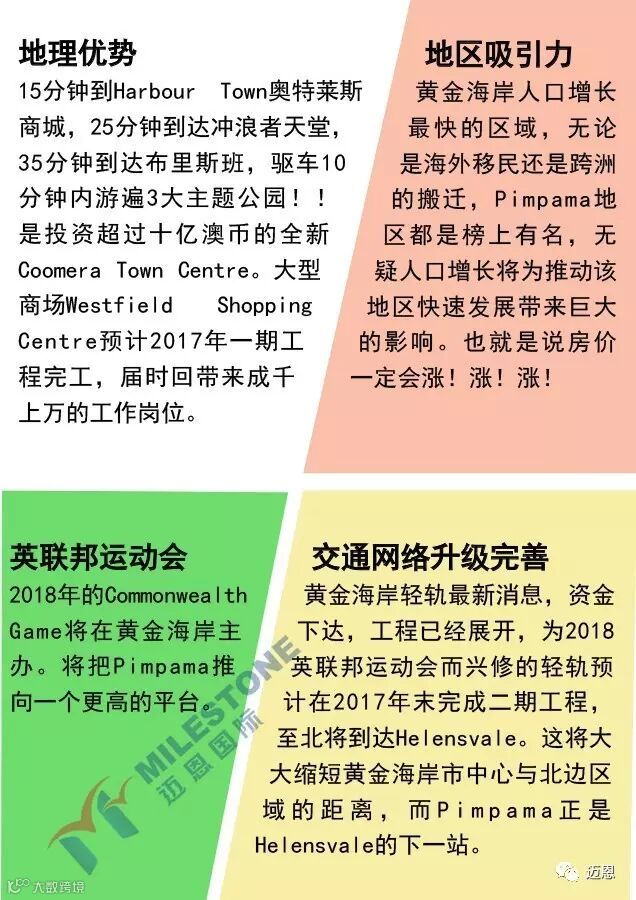 · 项目位于获政府大力宣导支持与大型开发公司巨额投资的宏观区域整体规划与超优越大投资商圈环境内( Coomera Town Centre购物商城、医院及政府办公设施)。