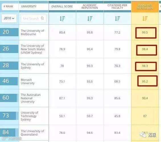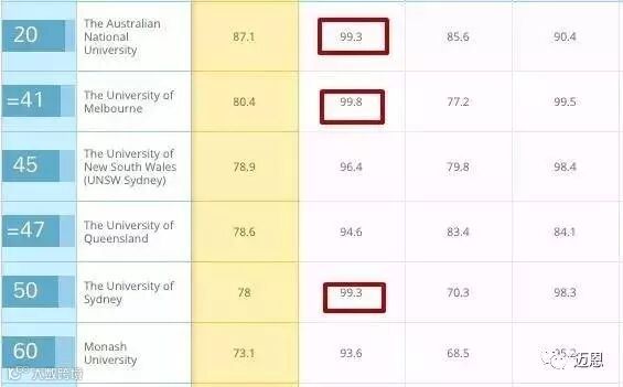 从具体评分来看,澳大利亚国立大学、墨尔本大学、悉尼大学等