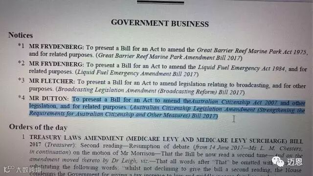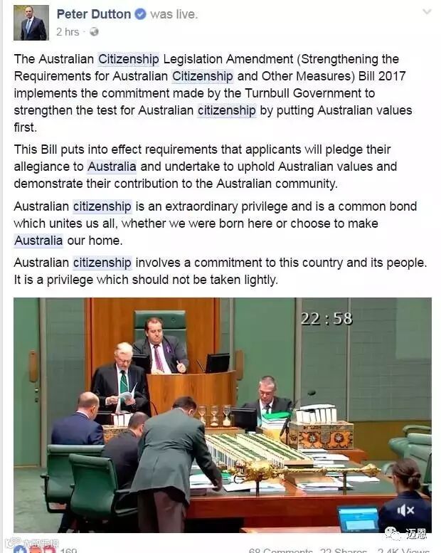 就在今天早上10点左右的时候,联邦移民部长Peter Duttonzheng正式向联邦国会递交了修改《2007年澳洲公民法案》以及《2017年澳洲公民法案修订案》的议案!