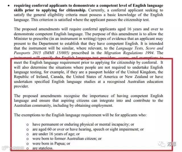 持英国、爱尔兰、加拿大、美国或新西兰护照,或者之前曾在获得认可的澳洲教育机构接受过特定的英文语言课程学习的入籍申请者,可以豁免参加英文考试!