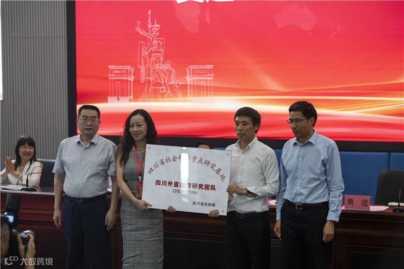 开幕式上,举行了四川省高水平科研团队“四川外宣翻译研究团队”授牌仪式。四川省社会科学届联合会党组副书记黄进与成都理工大学党委常委、副校长周仲礼为成都理工大学外国语学院院长刘永志教授和团队负责人张洁教授进行授牌。