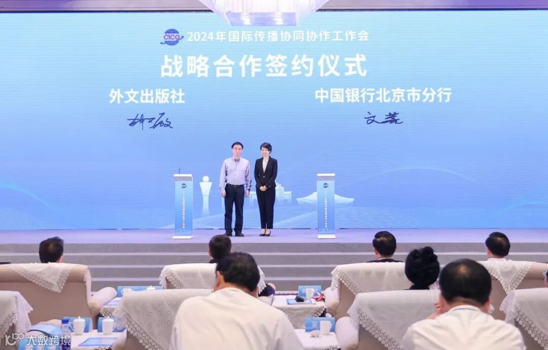 会议期间,外文出版社社长胡开敏与中国银行北京市分行资深客户经理文蓉共同签署了国际传播战略合作协议。