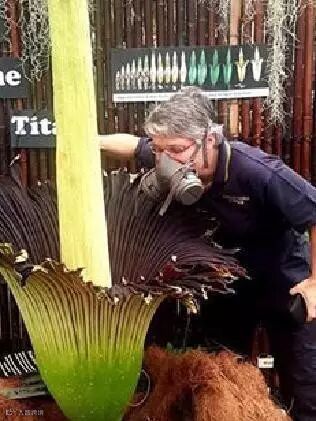 由于臭味太大,工作人员不得不戴上防毒面具才敢接近它。