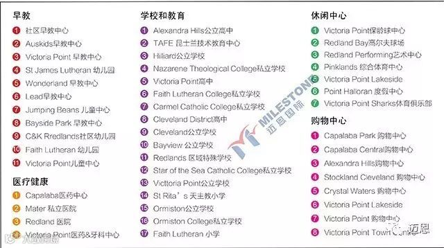 多种大型体育娱乐休闲公园距离住宅区只有几分钟路程,为体育爱好者们营造了绝好的条件。酷爱高尔夫运动的人士可以在风景如画的水滨高尔夫球场畅快挥杆(距离Redland Bay Golf Course雷德兰湾高尔夫球场仅有10分钟车程);周五晚上当地的足球队还会举行实况现场比赛。维多利亚角影院每天晚上都有最新电影上映。于此同时您也可以在附近最负盛名的餐厅就餐!