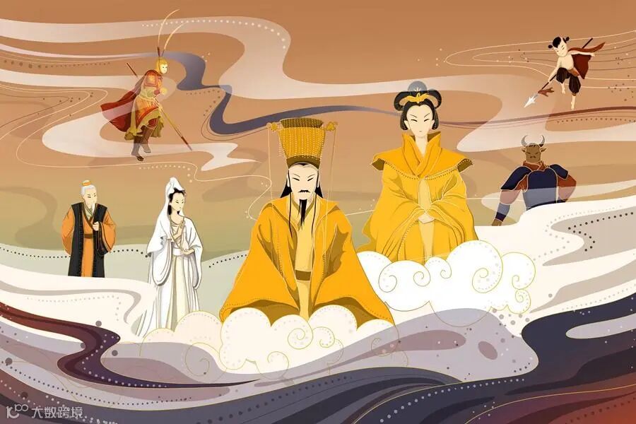 从字面上看,玉皇大帝与王母娘娘应该是夫妻关系或者是母子关系,其实不然,他们两个是上下级同事关系。玉皇大帝是天庭最高统治者,三才(天地人)主宰;王母则是生育万物、主管所有女仙和长生不老药的女神。玉皇大帝级别虽然高,但比起王母娘娘来,资历要浅很多。唐诗中有“玉皇”的称呼,到了宋代真宗年间才有正式的封号“太上开天执符御历含真体道玉皇大天帝”。而西王母的履历,则要从甲骨文时代算起。殷商甲骨有“贞侑于西母”的卜辞,《山海经》中也有关于西王母的记载。