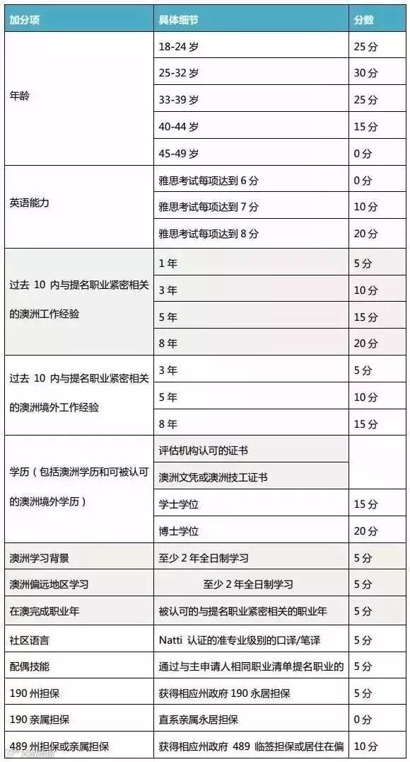 澳洲2年或以上全日制学习(5分)+学历加分(20分)+Specialist educational qualifications(5分)