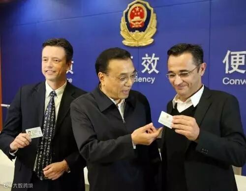 中国国务院总理李克强(中)2015年11月25日在上海自贸试验区考察时,正好遇见两位外籍人士领取“中国绿卡”为延揽天下英才,北京中关村今年先行试点外籍人才绿卡直通车、设立审批服务视窗等十项首创的出入境政策,成为外籍人才管理的试点基地。而中国6月底已加入国际移民组织,最快在今年底成立第一个移民局。