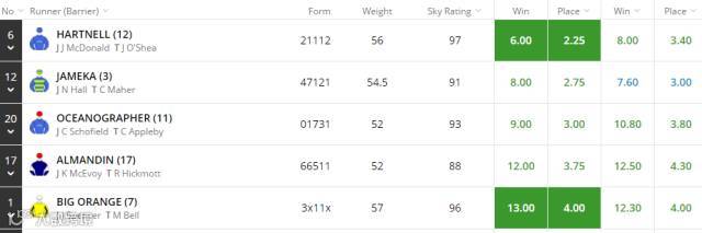 而本场的冠军Almandin仅排在赔率第4位,并不是夺冠热门。