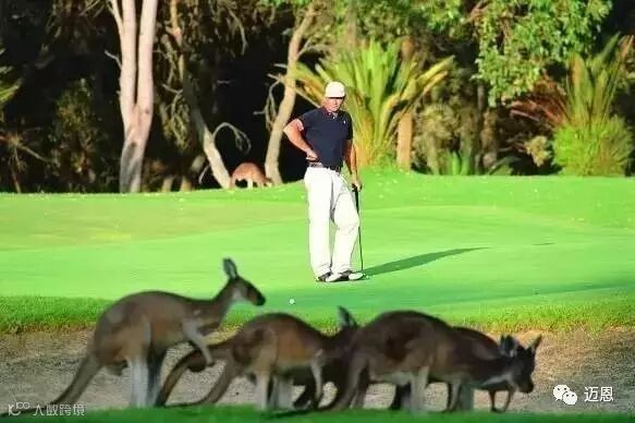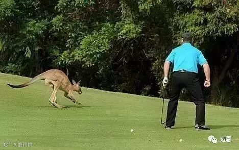 许多澳洲高尔夫球场都常有袋鼠来“串门”,大摇大摆还挺自在。虽然在2013年,一群袋鼠打断过一次高尔夫公开赛,但大多数高尔夫球手还是能跟袋鼠“和平共处”。