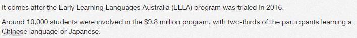 这个学习项目总投资额高达980万澳元,主要目的就是要让澳洲的学生掌握另外一个语言技能。